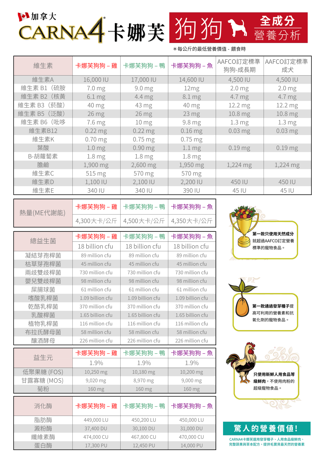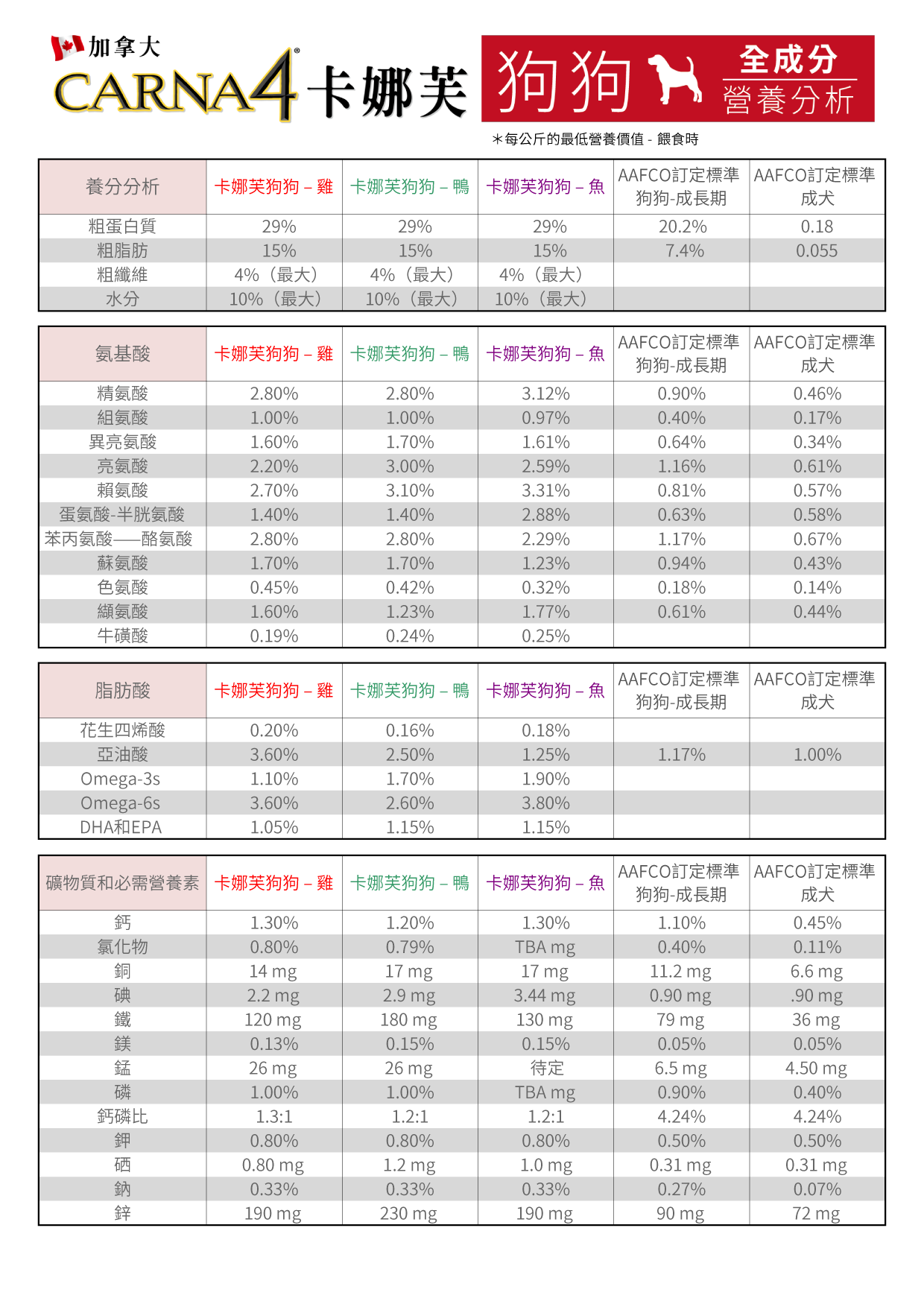 加拿大Carna4 卡娜芙 狗狗系列 全成分分析