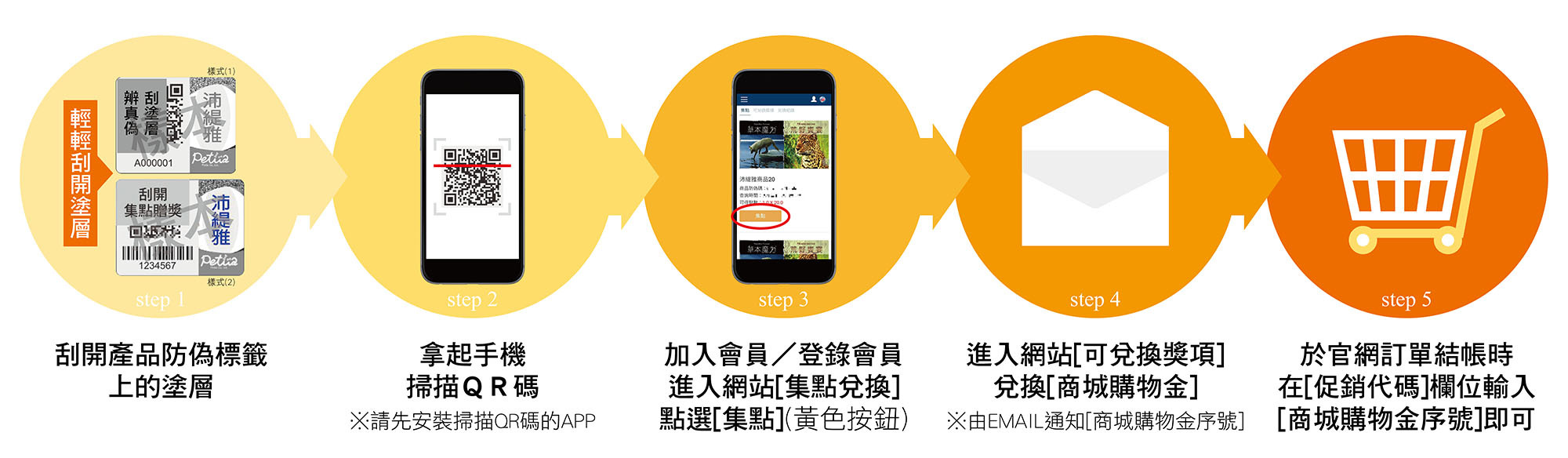 【防偽標籤集點】商城購物金使用說明-抵用方式及注意事項: