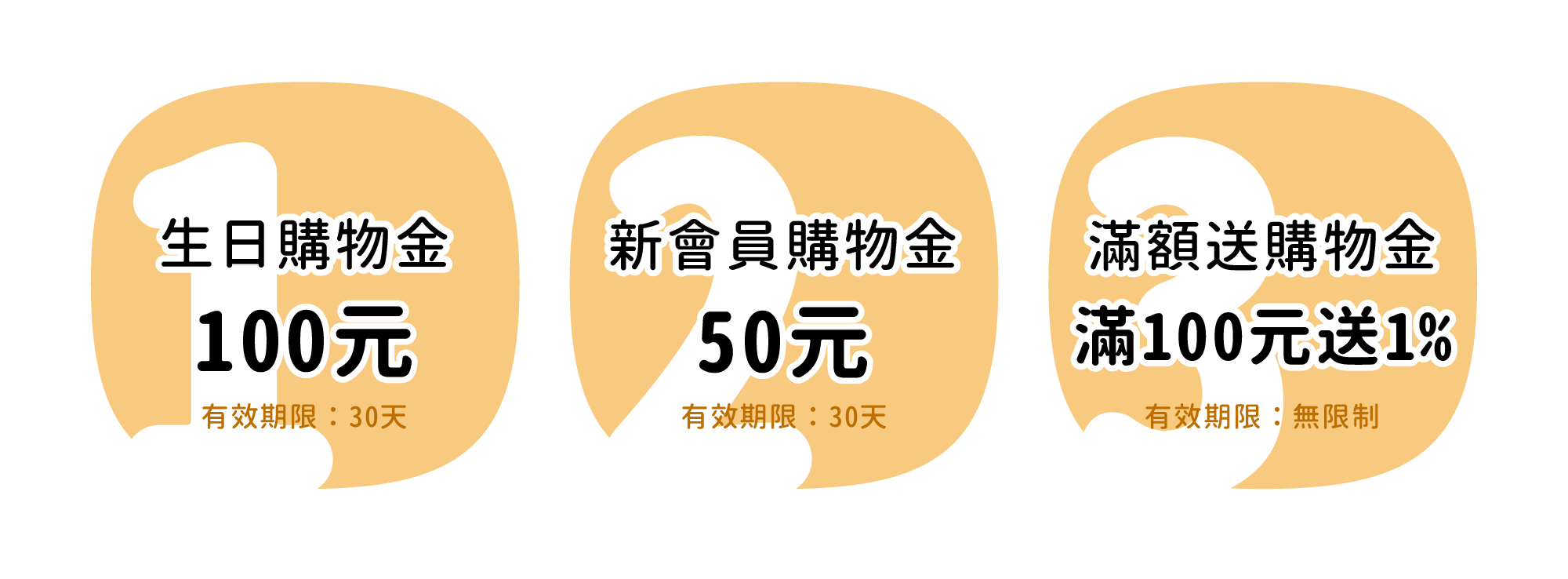 2. 官網會員每年可享生日購物金$100元,使用期限30天。