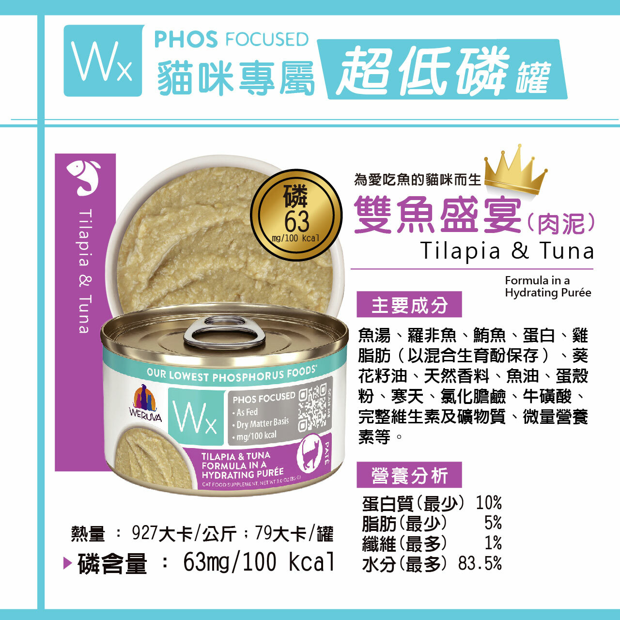◆天然低磷優質蛋白:羅非魚和野生鮪魚