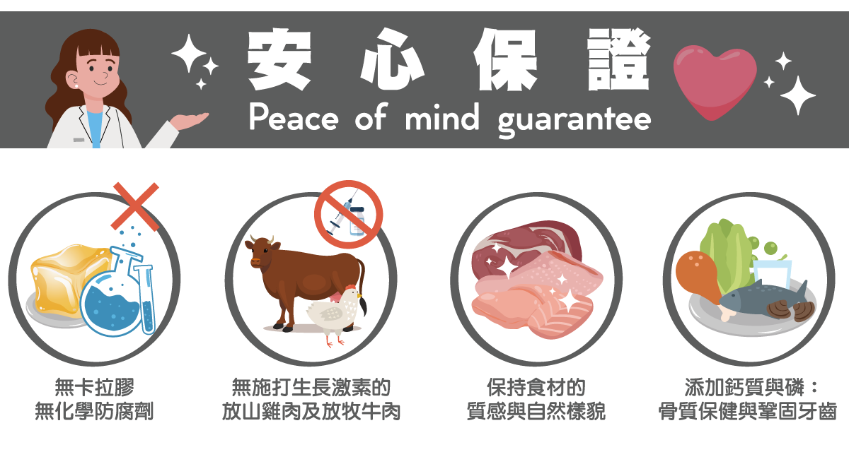 ★天然無穀,無卡拉膠、無化學防腐劑及填充物