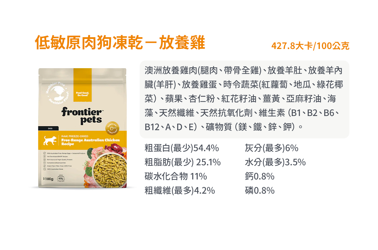 狗-放養雞【Frontier悅緻原凍】低敏原肉狗凍乾100g