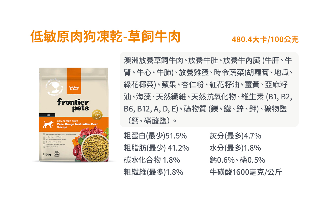 狗-草飼牛肉【Frontier悅緻原凍】低敏原肉狗凍乾100g